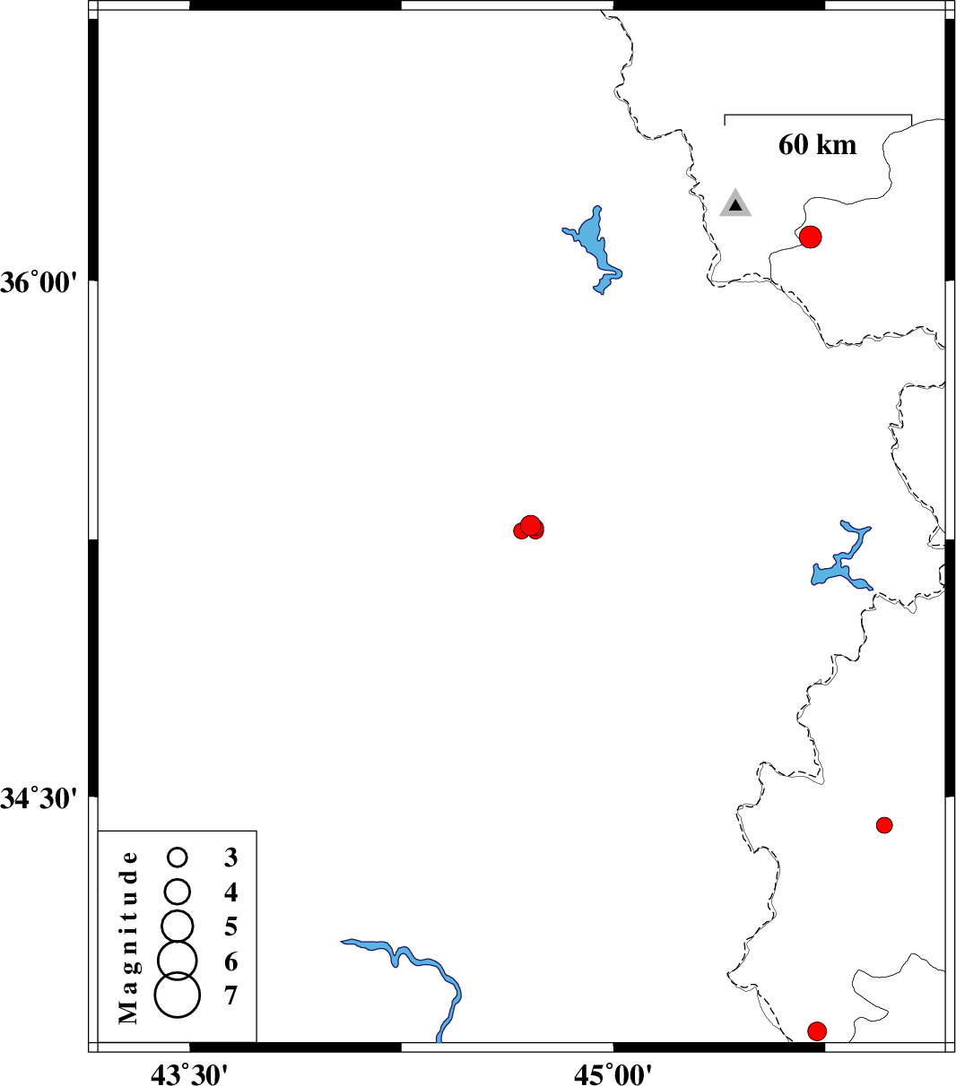 2018/10/27 20:24:25.7 23:54:25.7 35.29144.70714 ML3.2 Iraq, 73 km South-West of Sulaymaniyah