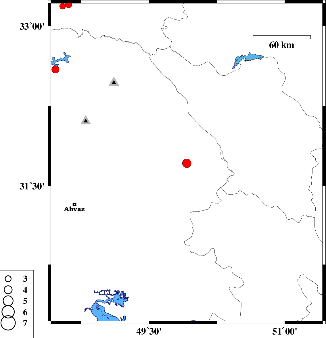 | 2018/10/31 | 20:00:19.6 | 23:30:19.6 | 32.594 | 48.467 | 15 | ML3.7 | Khoozestan Province, 18 km North-East of Andimeshk | ||