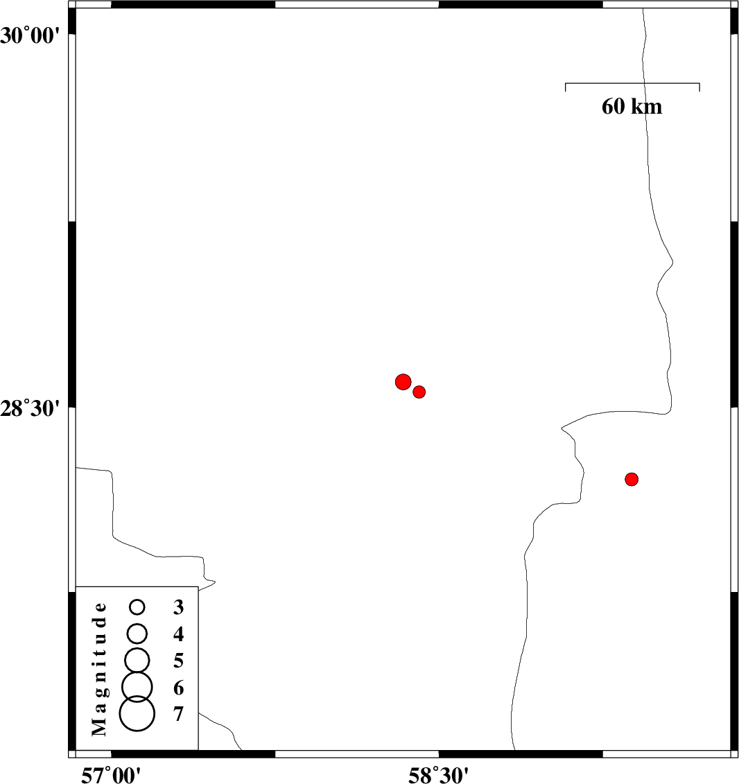 | 2018/11/04 | 02:13:08.1 | 05:43:08.1 | 28.603 | 58.336 | 14 | ML3.3 | Kerman Province, 56 km South of Bam | ||