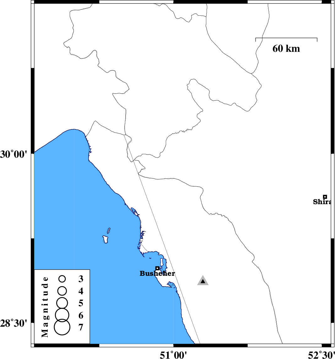| 2018/11/04 | 15:22:23.1 | 18:52:23.1 | 29.812 | 51.092 | 14 | ML2.5 | Fars Province, 62 km North-West of Borazjan |