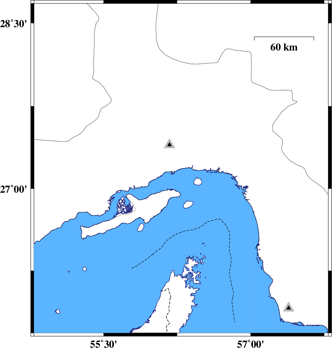 | 2018/11/06 | 04:14:42.8 | 07:44:42.8 | 28.203 | 56.949 | 14 | ML3.7 | Hormozgan Province, 78 km North-West of Kahnuj |