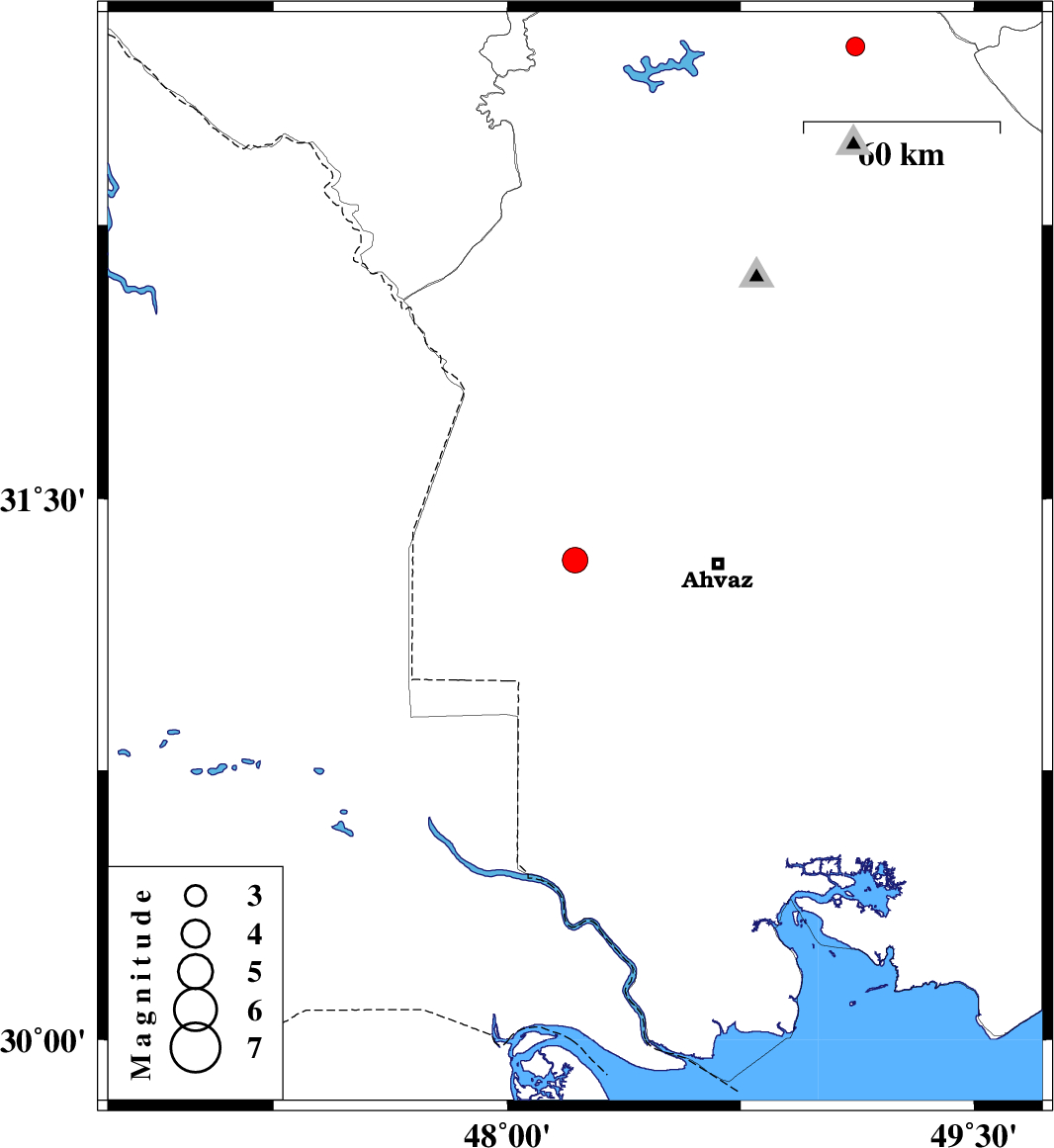 | 2018/11/11 | 13:49:19.3 | 17:19:19.3 | 31.331 | 48.218 | 15 | ML3.6 | Khoozestan Province, 25 km South of Susangerd | ||