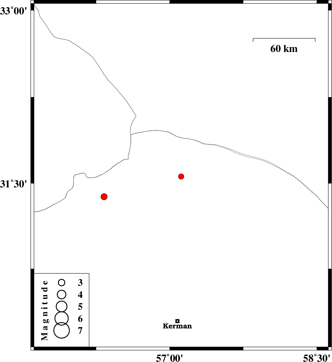 | 2018/11/10 | 13:47:58.6 | 17:17:58.6 | 31.382 | 56.331 | 14 | ML3 | Kerman Province, 47 km North-West of Ravar |