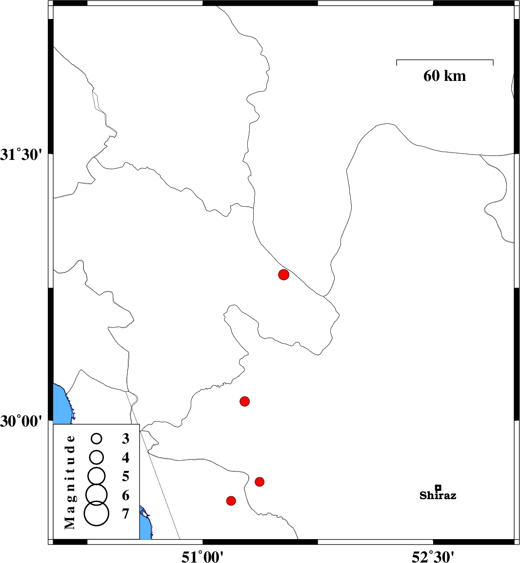 | 2018/11/12 | 05:15:42.2 | 08:45:42.2 | 29.544 | 51.184 | 14 | ML2.7 | Bushehr Province, 31 km North of Borazjan |