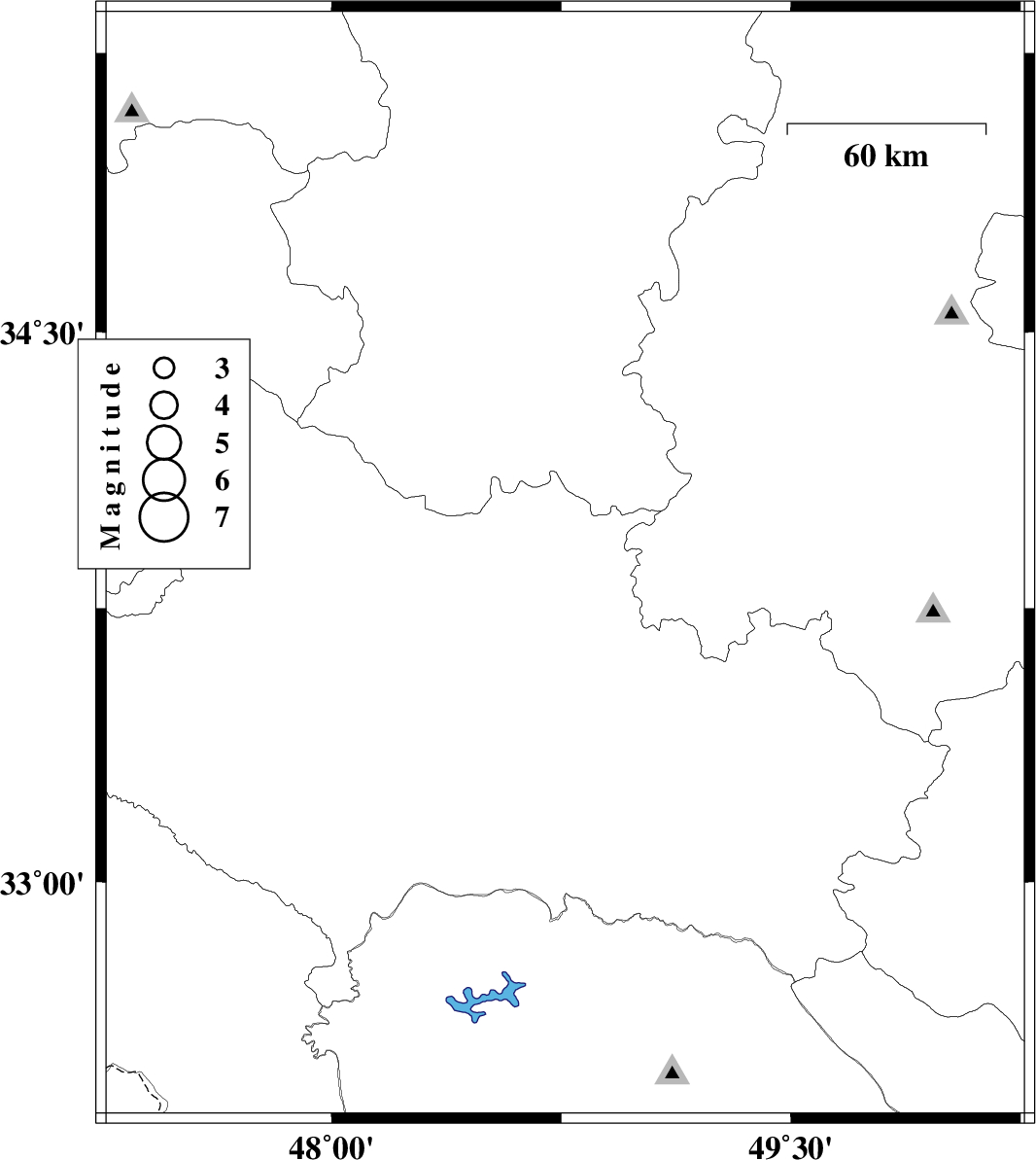 | 2018/11/26 | 10:55:26.7 | 14:25:26.7 | 33.862 | 48.763 | 15 | ML3.9 | Lorestan Province, 4 km of Borujerd |