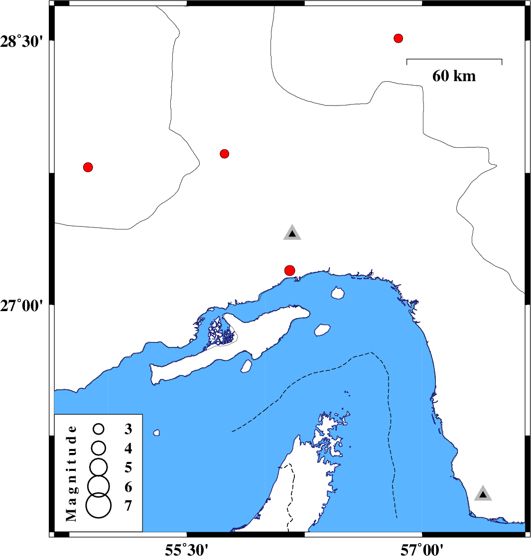 | 2018/12/04 | 02:19:27.3 | 05:49:27.3 | 27.194 | 56.155 | 11 | ML2.9 | Hormozgan Province, 13 km -West of Bandar-e abbas | ||