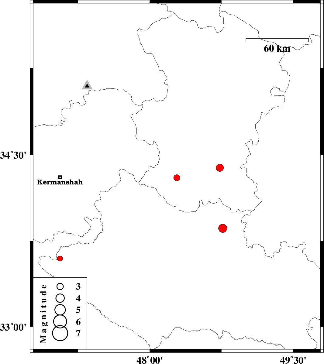 | 2018/11/04 | 06:56:12.9 | 10:26:12.9 | 33.598 | 47.062 | 14 | ML2.6 | Lorestan Province, 52 km -West of Kuhdasht |