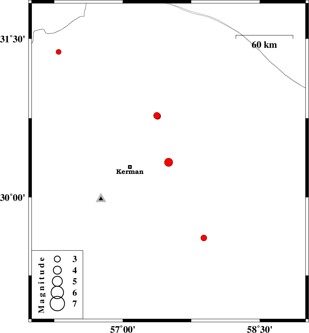 | 2018/12/02 | 15:44:54.4 | 19:14:54.4 | 29.611 | 57.888 | 14 | ML2.9 | Kerman Province, 72 km North-West of Bam |