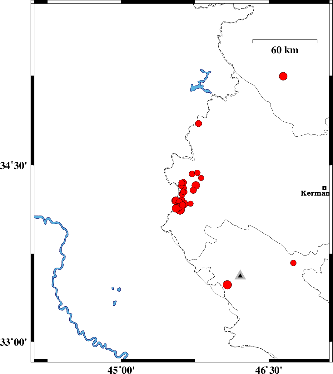 2018/12/03 16:21:40.7 19:51:40.7 34.25245.61917 ML2.7 Kermanshah Province, 30 km South of Qasr-E-Shirin