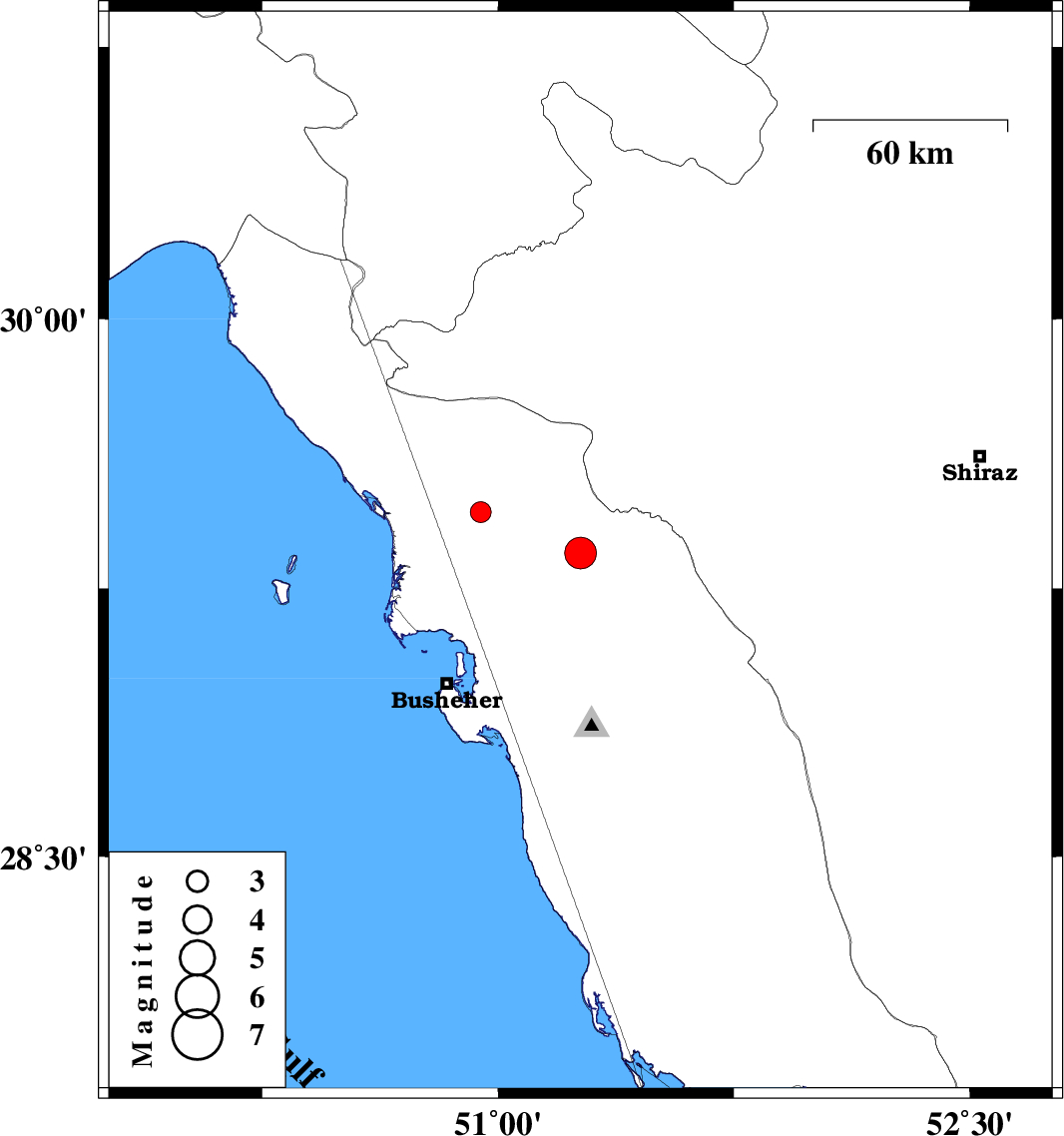 | 2018/12/29 | 15:20:58.0 | 18:50:58.0 | 29.464 | 50.944 | 14 | ML3 | Bushehr Province, 34 km North-West of Borazjan |