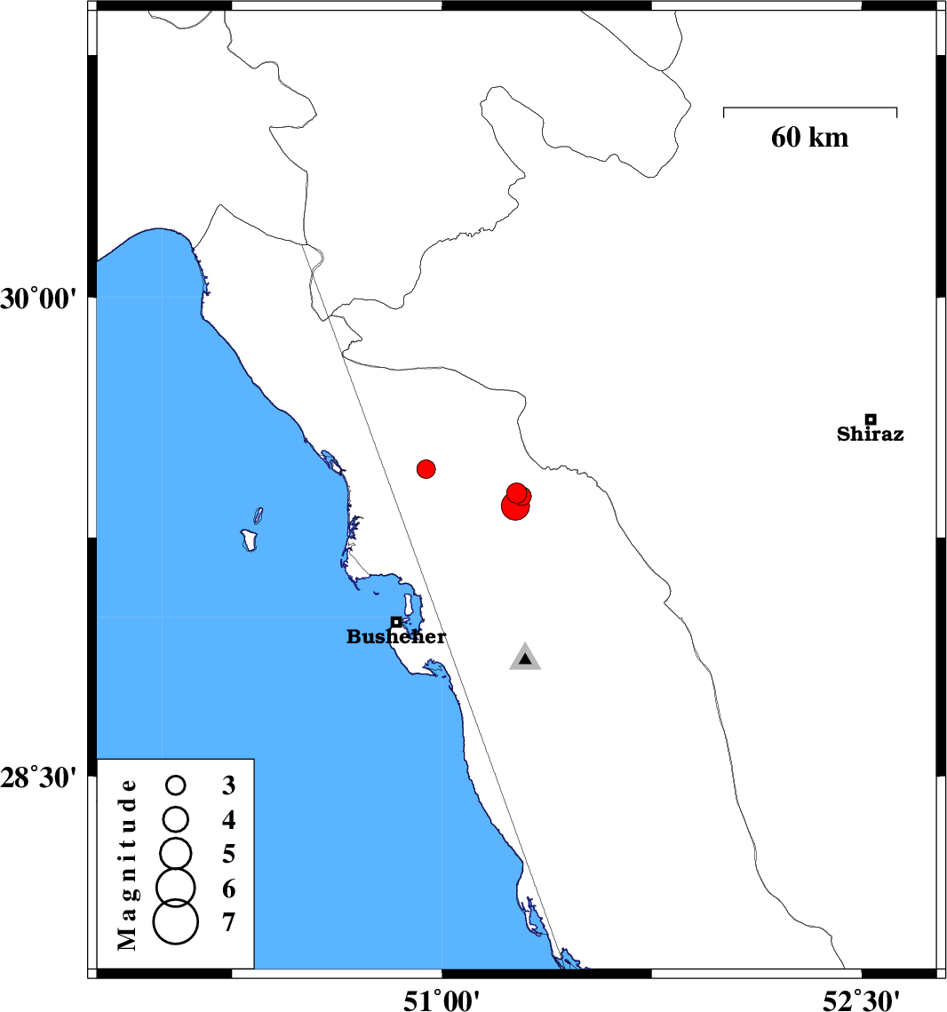 | 2018/12/29 | 15:20:58.0 | 18:50:58.0 | 29.464 | 50.944 | 14 | ML3 | Bushehr Province, 34 km North-West of Borazjan |
