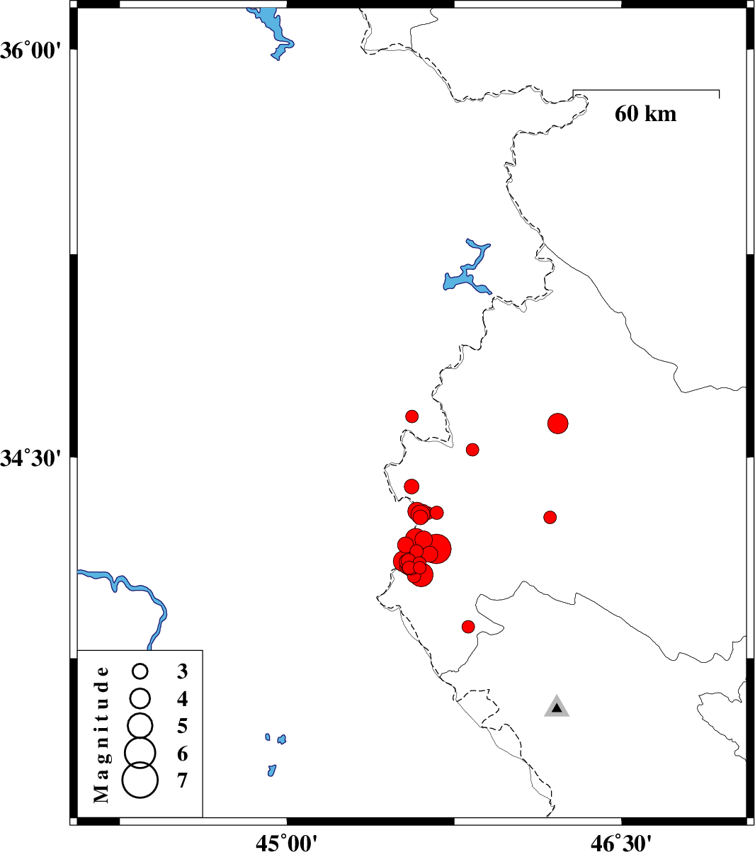 2019/01/01 12:37:22.9 16:07:22.9 33.86845.81314 ML2.6 Kermanshah Province, 32 km South-West of Gilan-E-Gharb