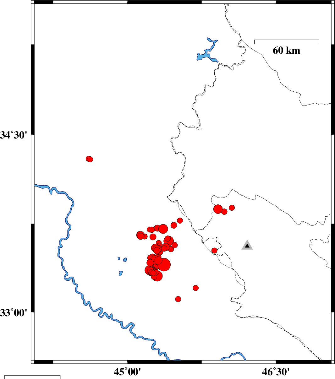 2019/01/04 18:02:40.8 21:32:40.8 34.29345.67115 ML2.7 Kermanshah Province, 26 km South of Qasr-E-Shirin