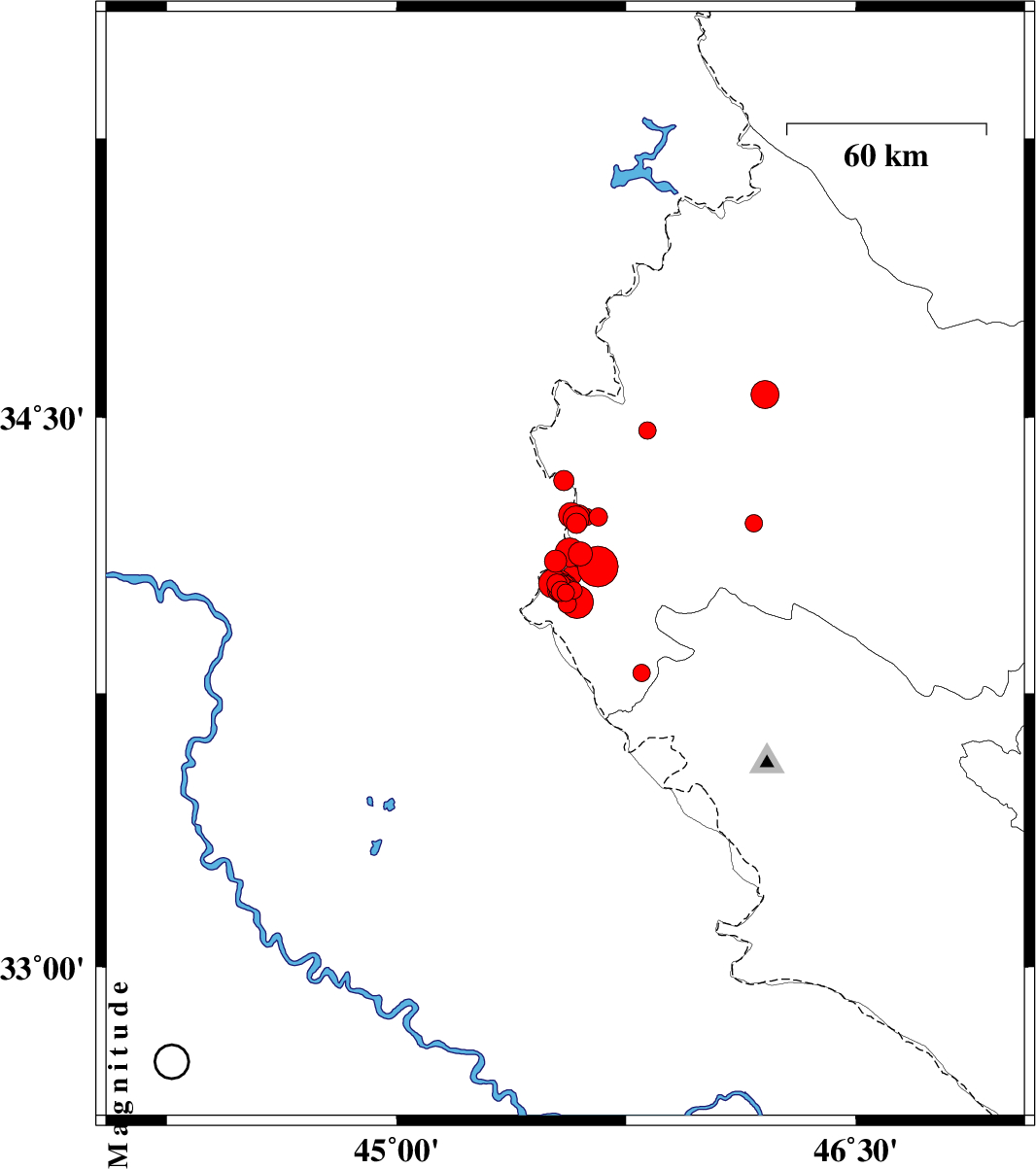 2019/01/01 12:37:22.9 16:07:22.9 33.86845.81314 ML2.6 Kermanshah Province, 32 km South-West of Gilan-E-Gharb