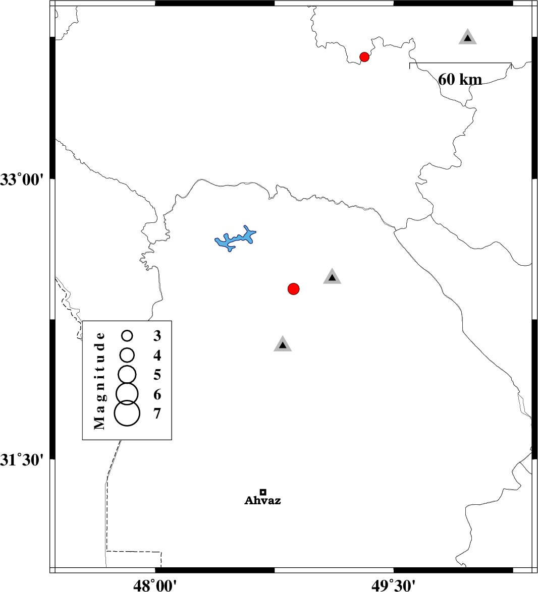 | 2019/01/12 | 13:17:50.8 | 16:47:50.8 | 32.413 | 48.869 | 14 | ML3.2 | Khoozestan Province, 23 km -West of Lali | ||