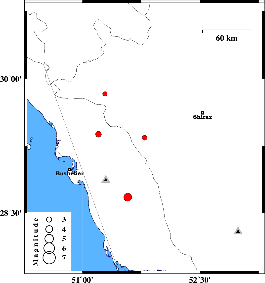 | 2019/01/10 | 00:34:24.7 | 04:04:24.7 | 29.38 | 51.204 | 17 | ML3.4 | Bushehr Province, 13 km North of Borazjan | ||