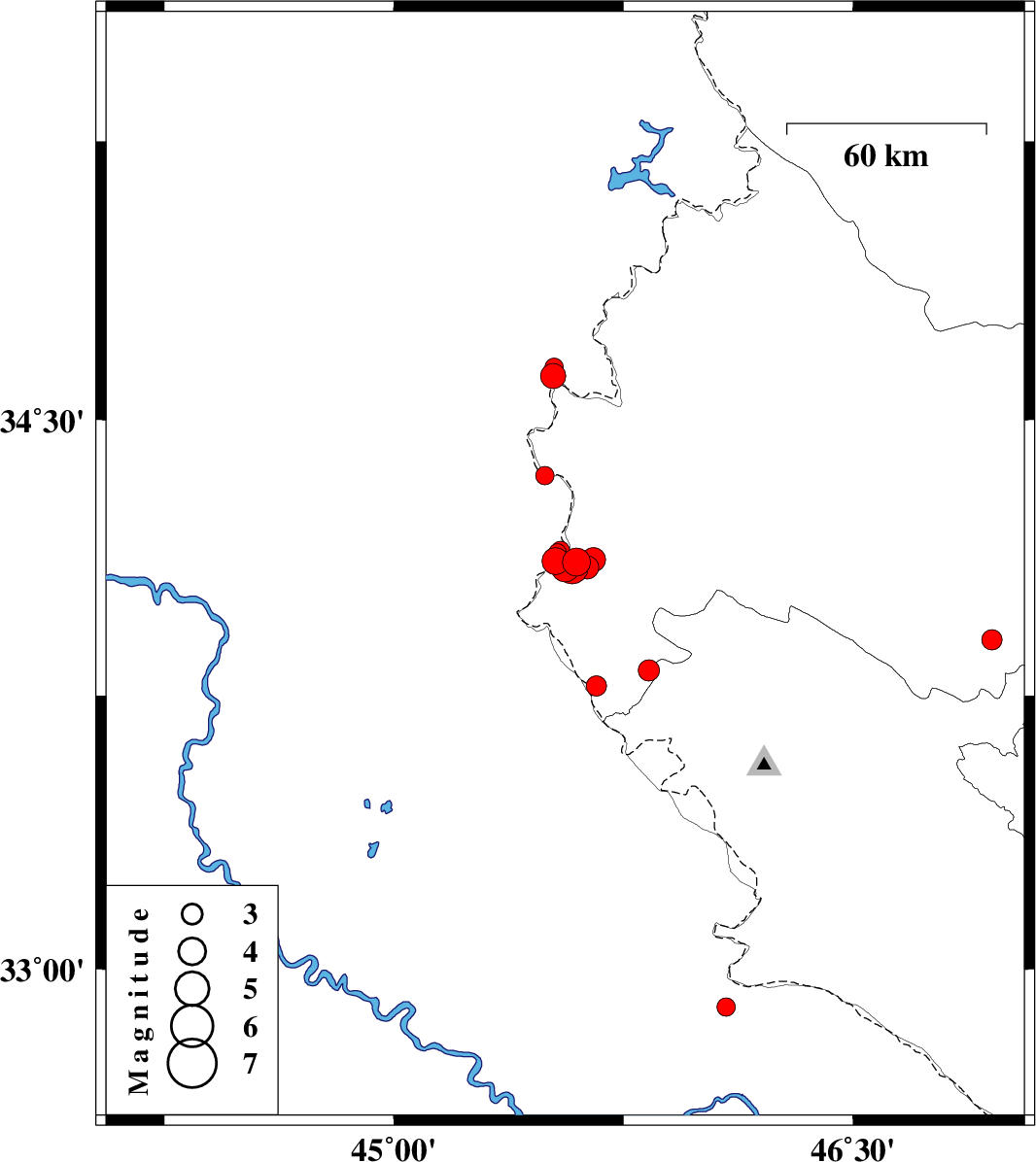 2019/01/08 11:45:21.2 15:15:21.2 34.34945.49314 ML2.7 Kermanshah Province, 20 km South of Qasr-E-Shirin