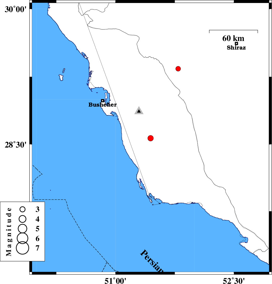 | 2019/01/18 | 05:29:32.1 | 08:59:32.1 | 28.567 | 51.444 | 23 | ML3.3 | Bushehr Province, 12 km of Khormog | ||