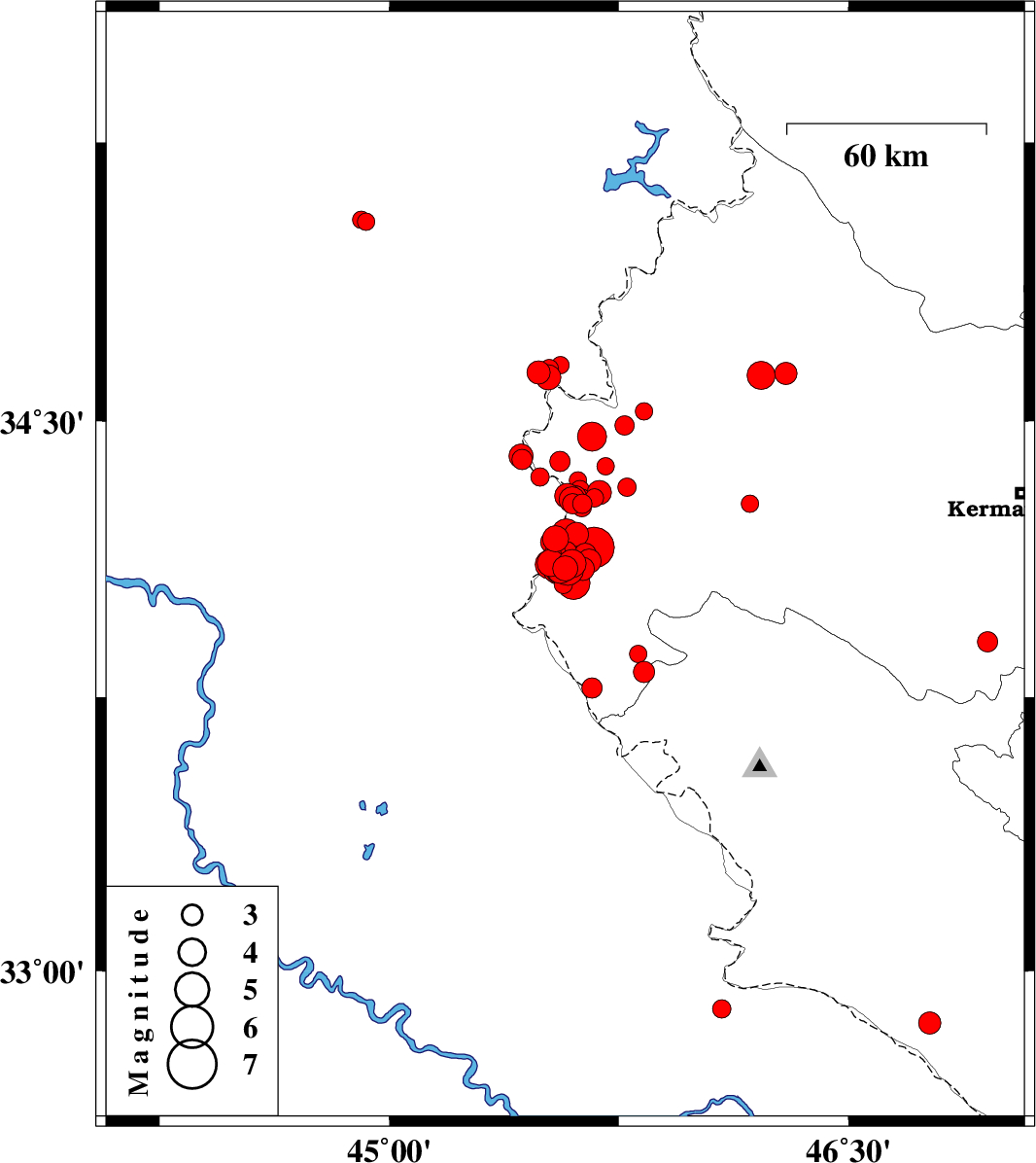 2019/01/01 12:37:22.9 16:07:22.9 33.86845.81314 ML2.6 Kermanshah Province, 32 km South-West of Gilan-E-Gharb