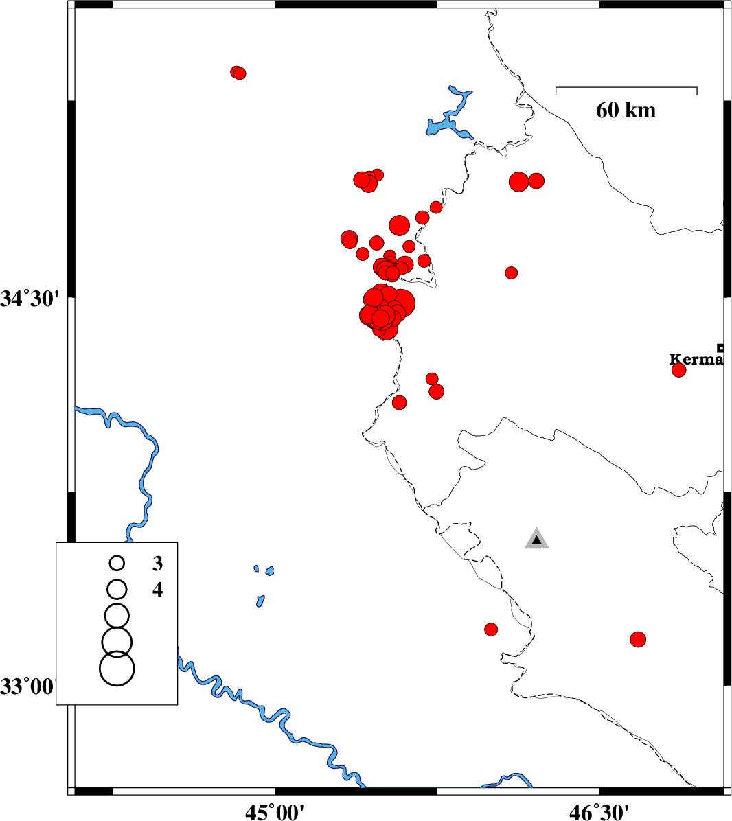 2019/01/04 18:02:40.8 21:32:40.8 34.29345.67115 ML2.7 Kermanshah Province, 26 km South of Qasr-E-Shirin