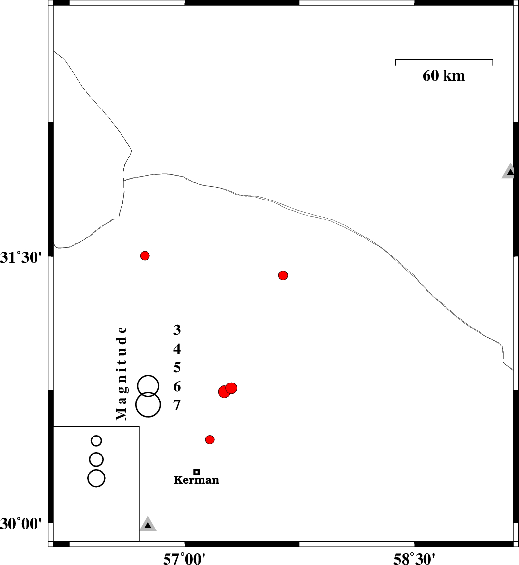 | 2019/01/20 | 23:36:09.3 | 03:06:09.3 | 30.471 | 57.165 | 14 | ML2.6 | Kerman Province, 22 km North of Kerman | ||