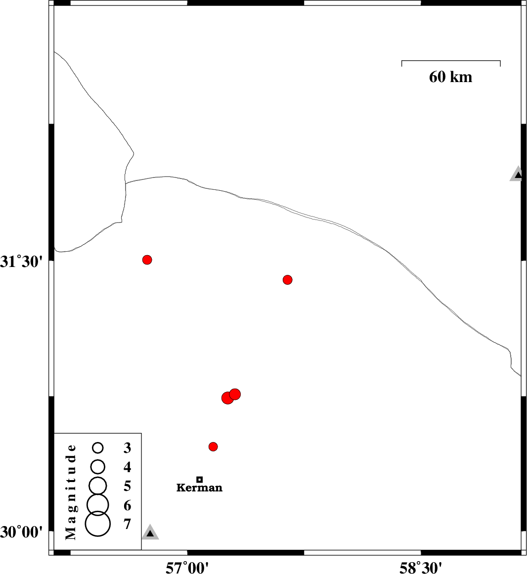 | 2019/01/15 | 23:05:09.3 | 02:35:09.3 | 31.505 | 56.741 | 14 | ML2.7 | Kerman Province, 27 km North of Ravar |