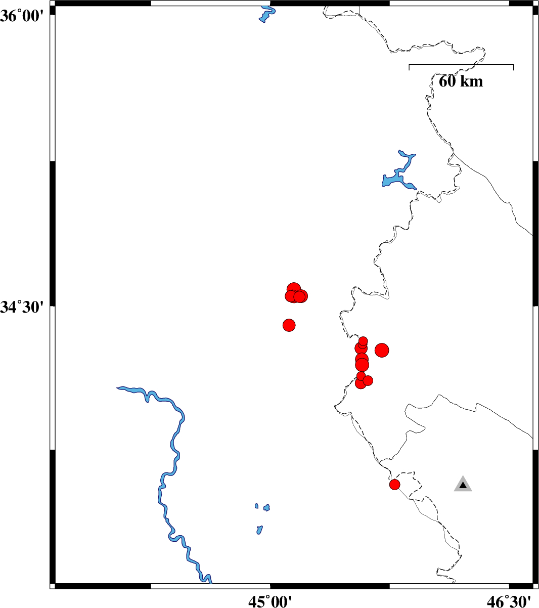 2019/01/23 09:45:20.3 13:15:20.3 34.22245.57414 ML3.7 Kermanshah Province, 33 km South of Qasr-E-Shirin