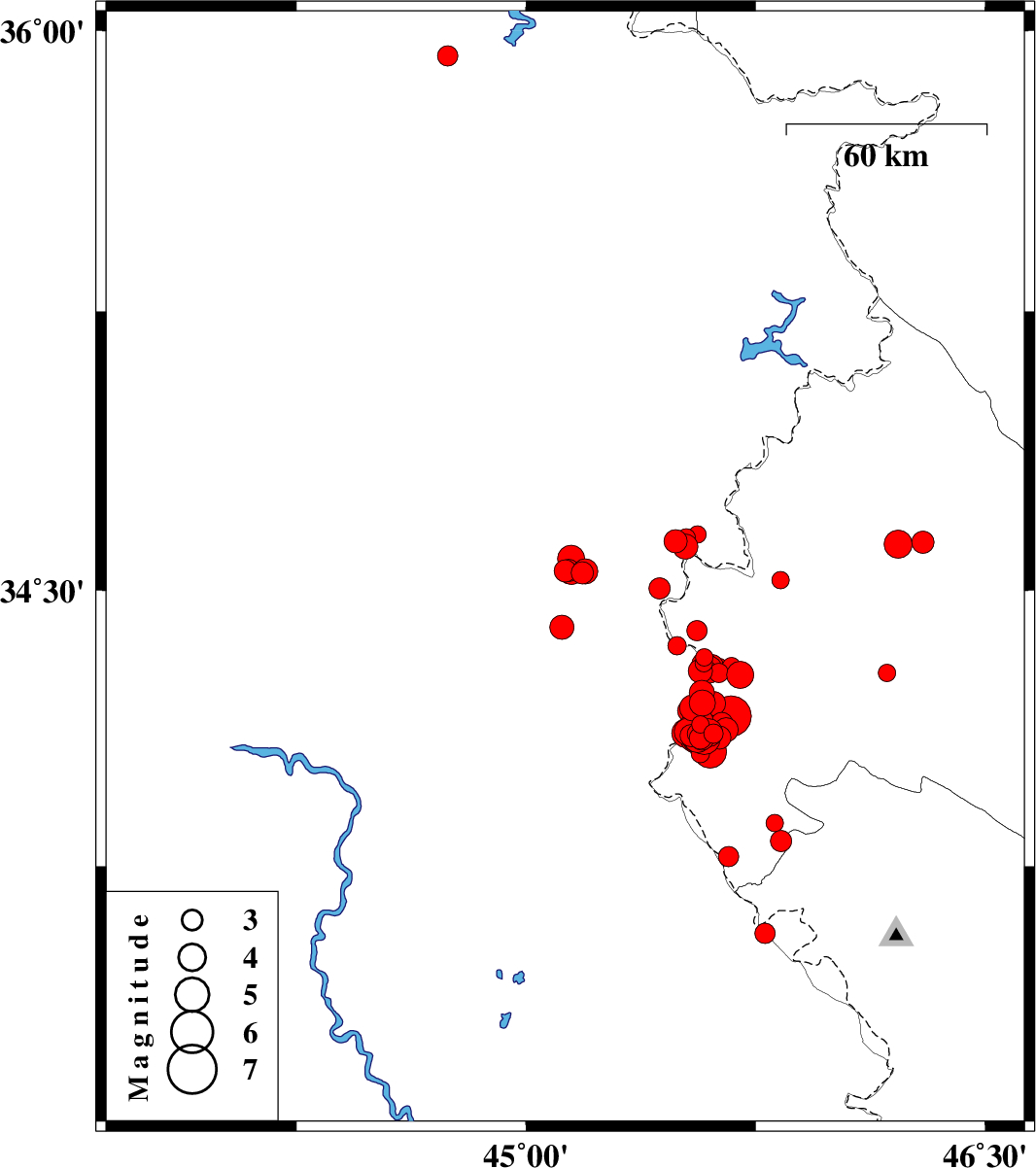 2019/01/01 12:37:22.9 16:07:22.9 33.86845.81314 ML2.6 Kermanshah Province, 32 km South-West of Gilan-E-Gharb