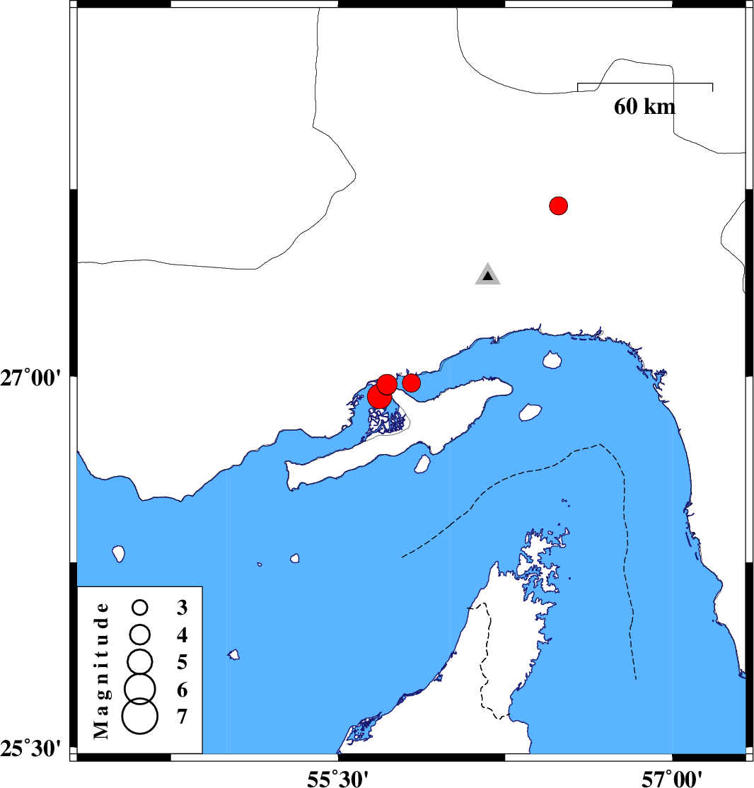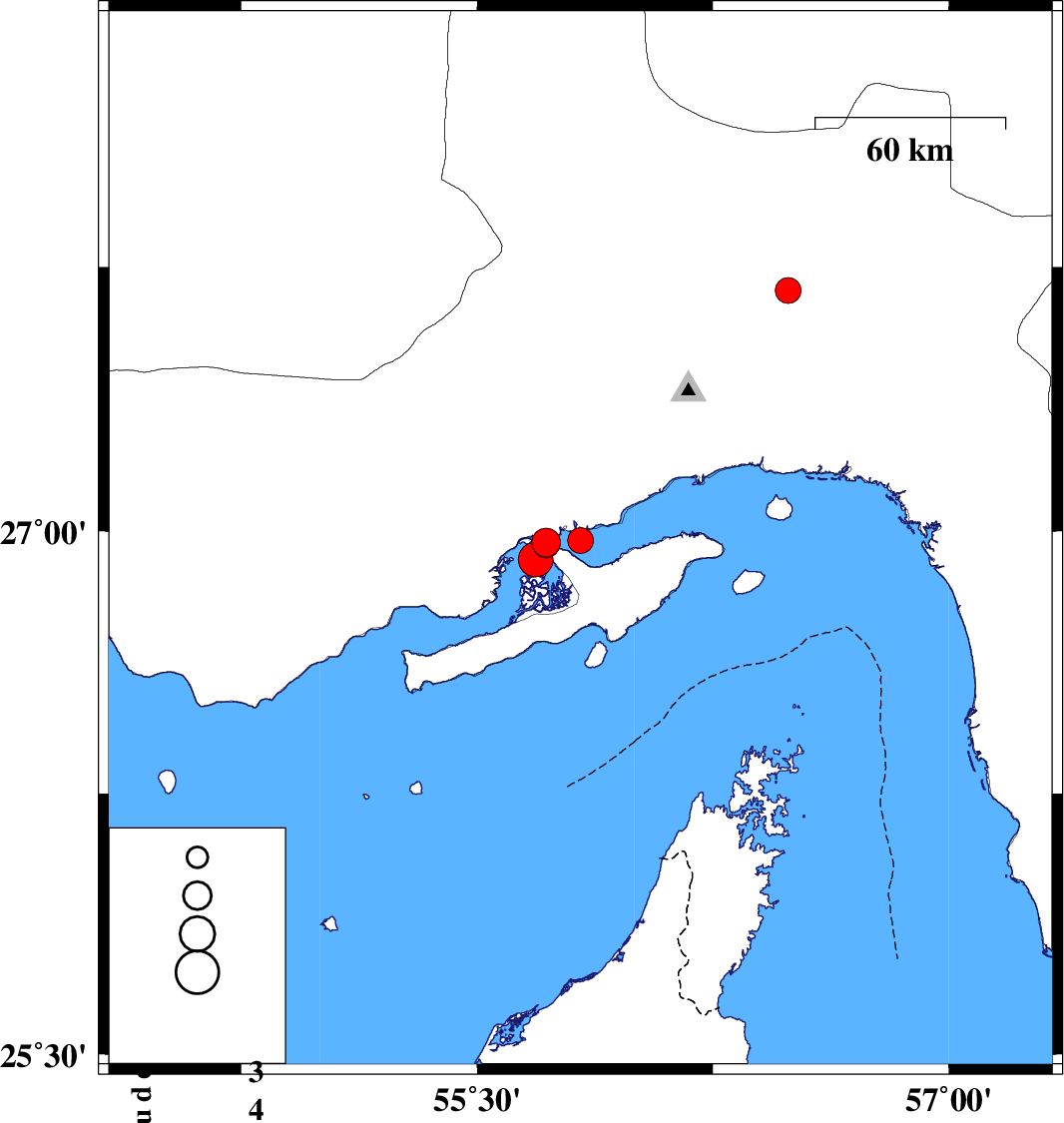 | 2019/02/10 | 10:54:45.9 | 14:24:45.9 | 26.919 | 55.687 | 9 | ML5 | Persian Gulf, 58 km -West of Qeshm | ||