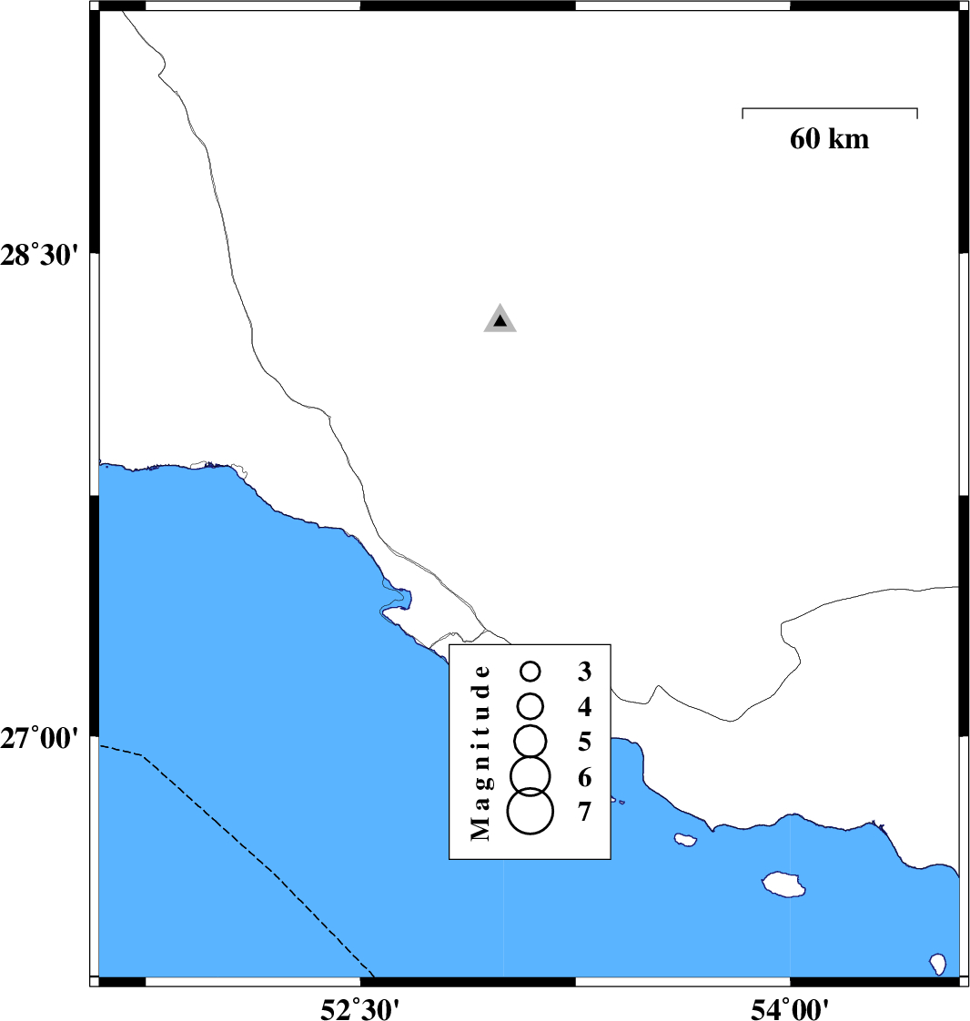| 2019/02/13 | 09:19:06.0 | 12:49:06.0 | 27.745 | 53.088 | 7 | ML3.9 | Fars Province, 30 km North-East of Mehr |