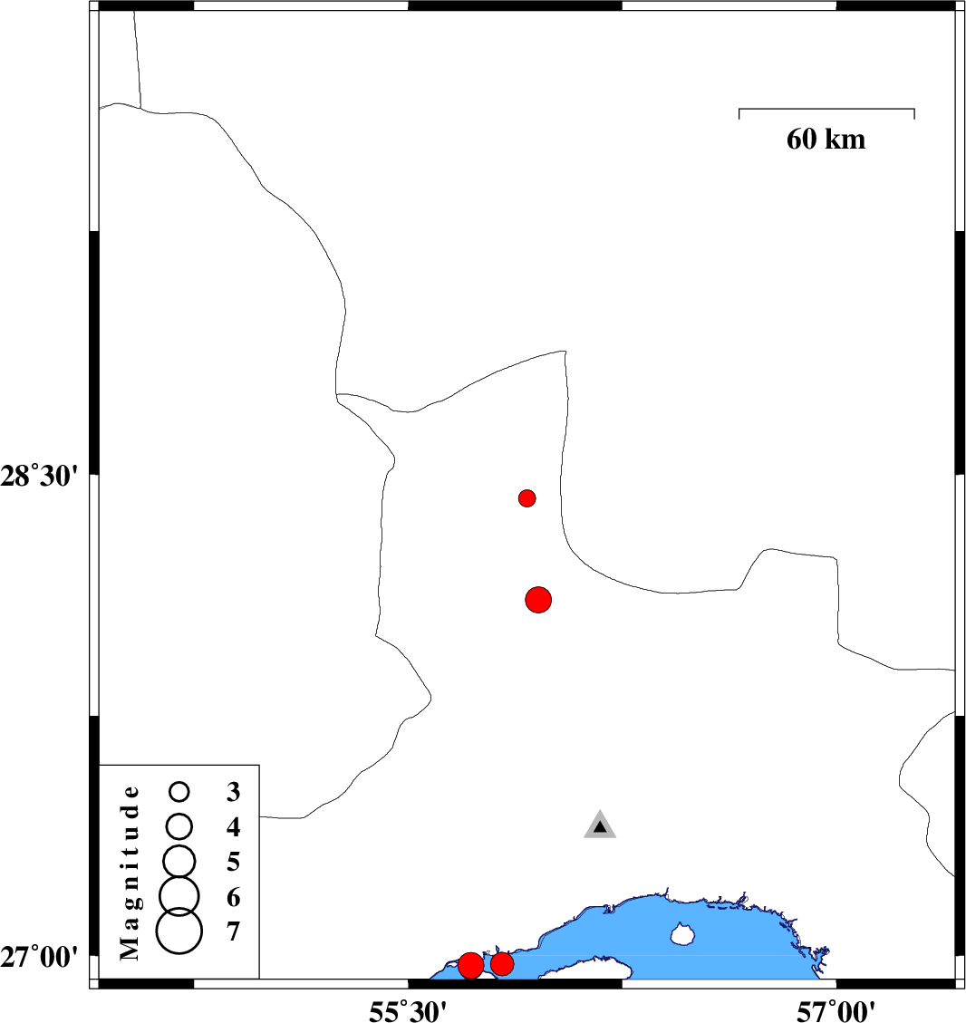 | 2019/02/13 | 08:45:42.2 | 12:15:42.2 | 26.973 | 55.829 | 15 | ML3.6 | Persian Gulf, 43 km -West of Qeshm | ||