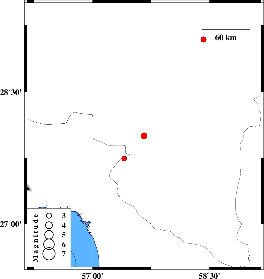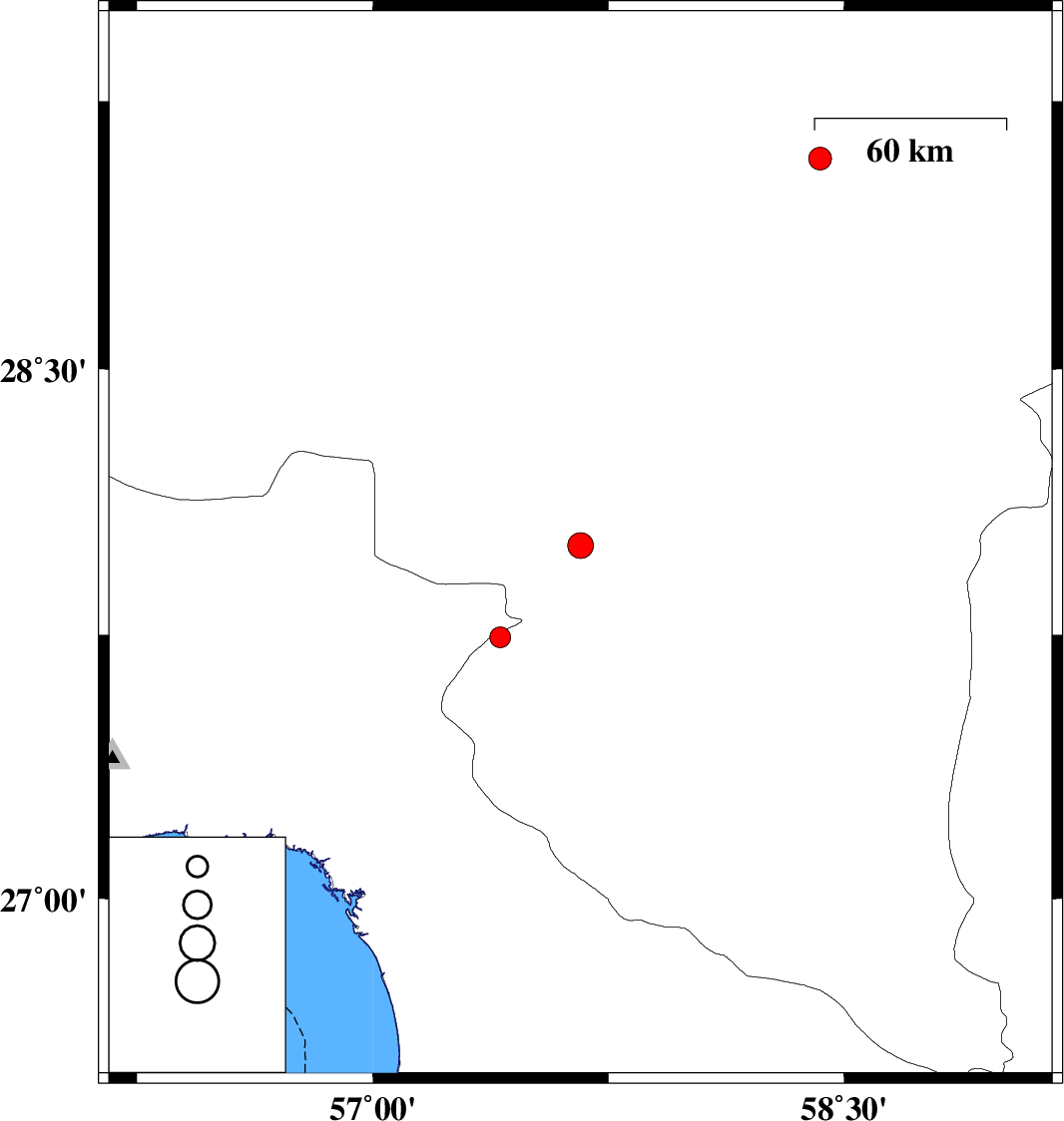 | 2019/02/23 | 07:19:26.4 | 10:49:26.4 | 28.003 | 57.661 | 16 | ML3.6 | Kerman Province, 7 km of Kahnuj | ||