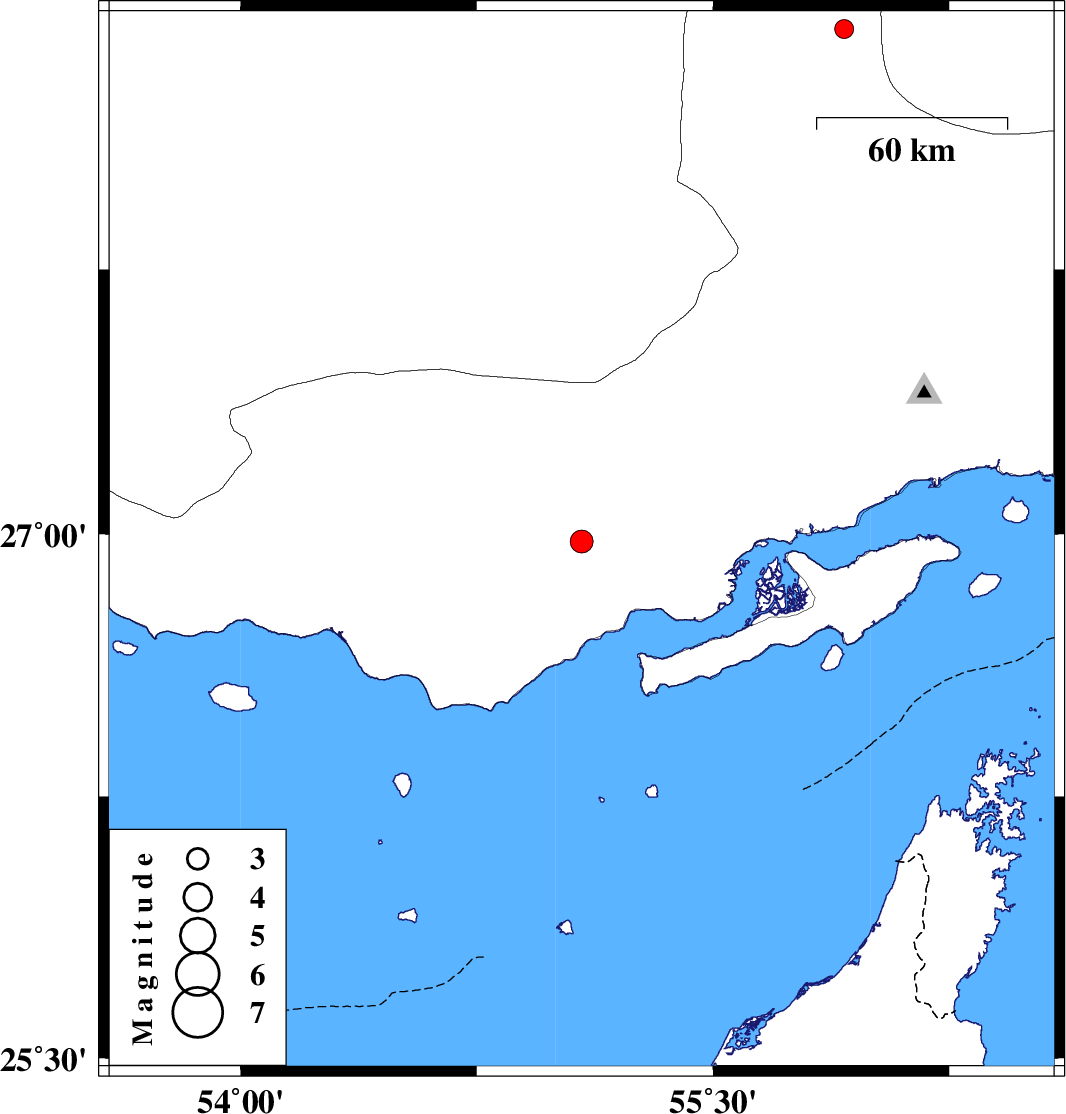 | 2019/02/23 | 20:03:49.5 | 23:33:49.5 | 26.978 | 55.083 | 7 | ML3.2 | Hormozgan Province, 55 km North-East of Bandar-e lengeh | ||