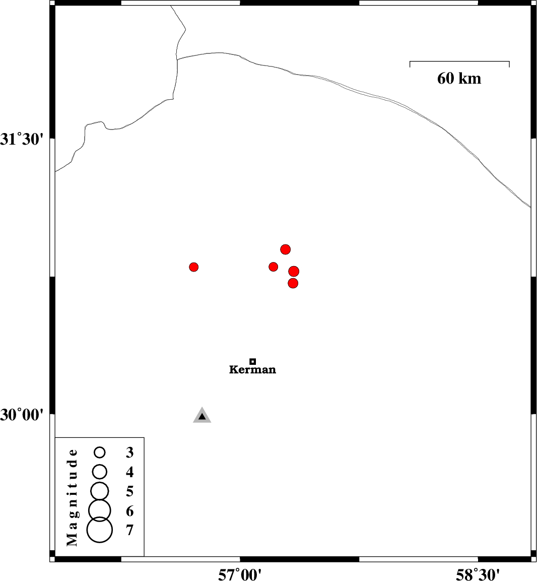 | 2019/02/22 | 15:18:50.4 | 18:48:50.4 | 30.779 | 57.338 | 14 | ML2.9 | Kerman Province, 60 km North-East of Kerman | ||
