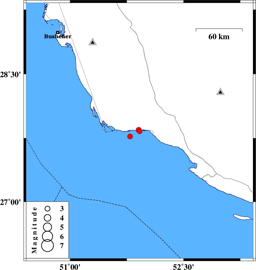 2019/03/01 07:16:26.9 10:46:26.9 27.7751.79334 ML3.1 Persian Gulf, 27 km -West of Bandar-e kangan