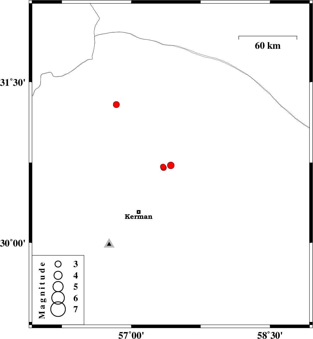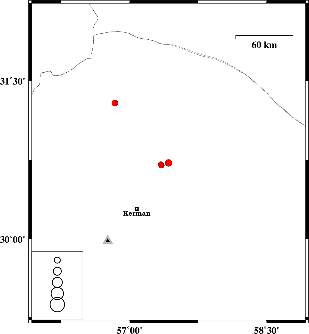 | 2019/03/10 | 17:36:53.7 | 21:06:53.7 | 30.711 | 57.343 | 14 | ML2.7 | Kerman Province, 53 km North-East of Kerman | ||