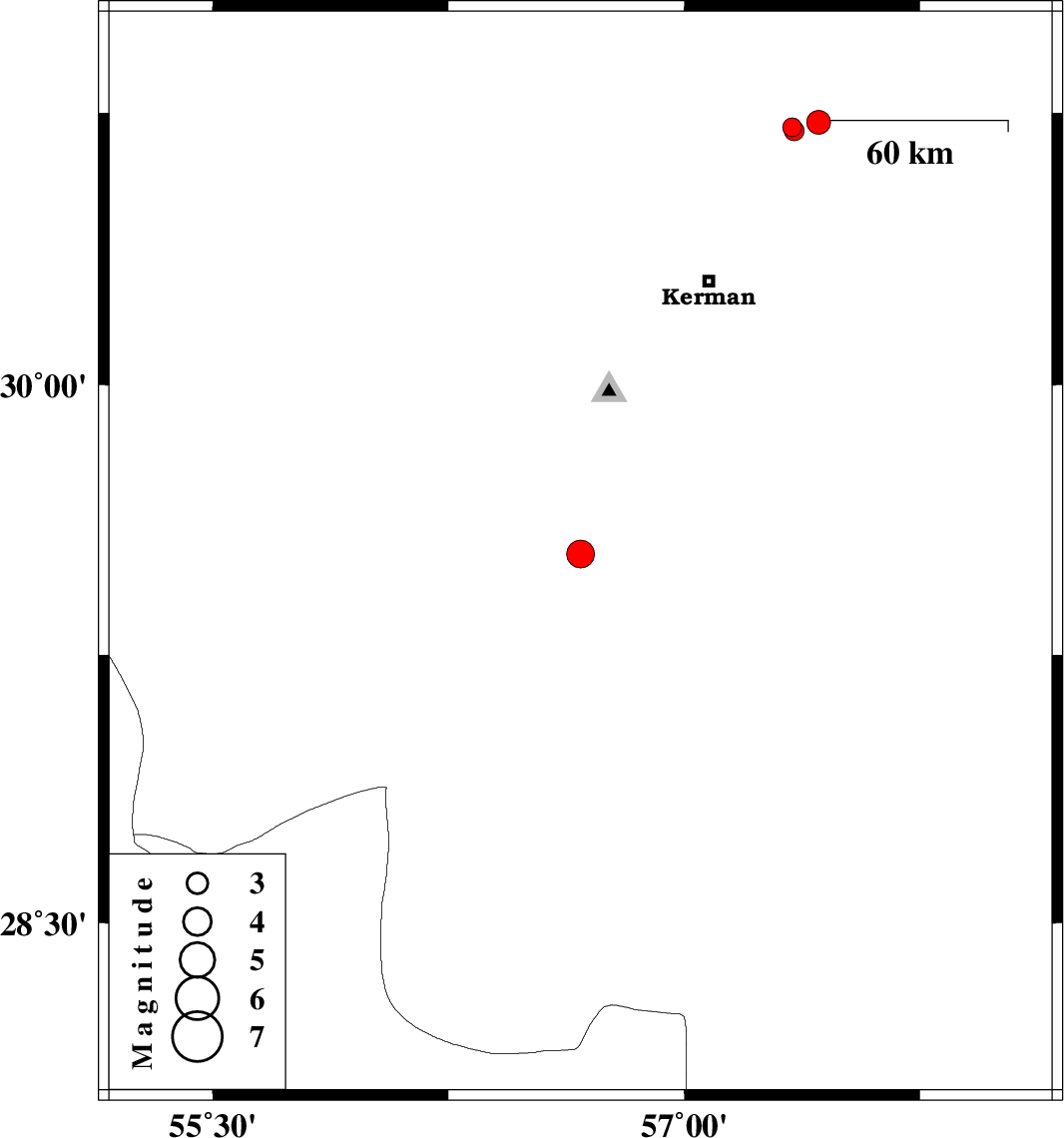 | 2019/03/06 | 23:07:05.6 | 02:37:05.6 | 30.701 | 57.349 | 14 | ML2.8 | Kerman Province, 53 km North-East of Kerman |