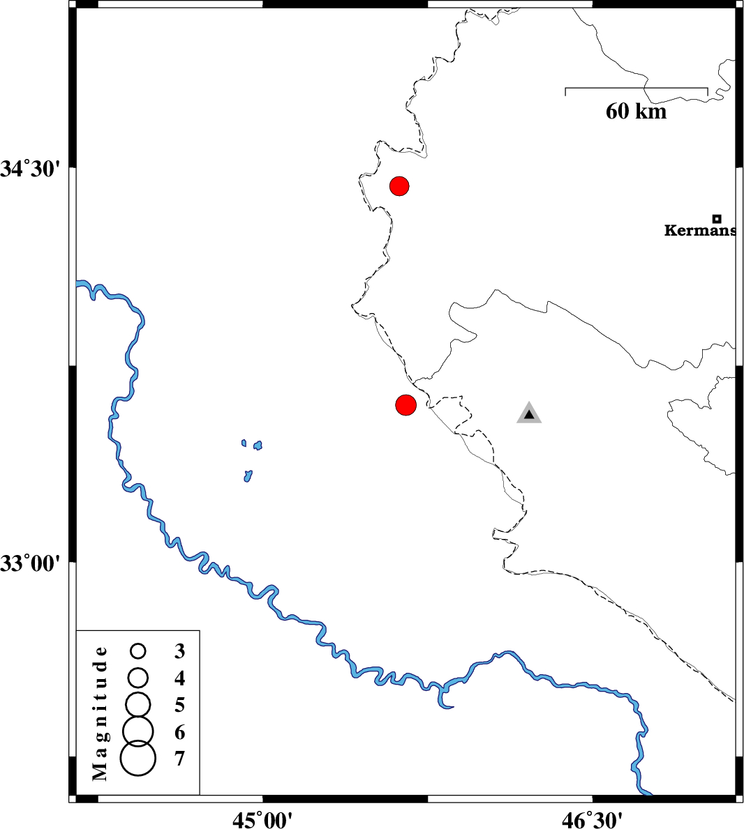 | 2019/04/23 | 02:59:38.3 | 07:29:38.3 | 34.43 | 45.62 | 10 | ML3.9 | Kermanshah Province, 10 km of Qasr-E-Shirin |