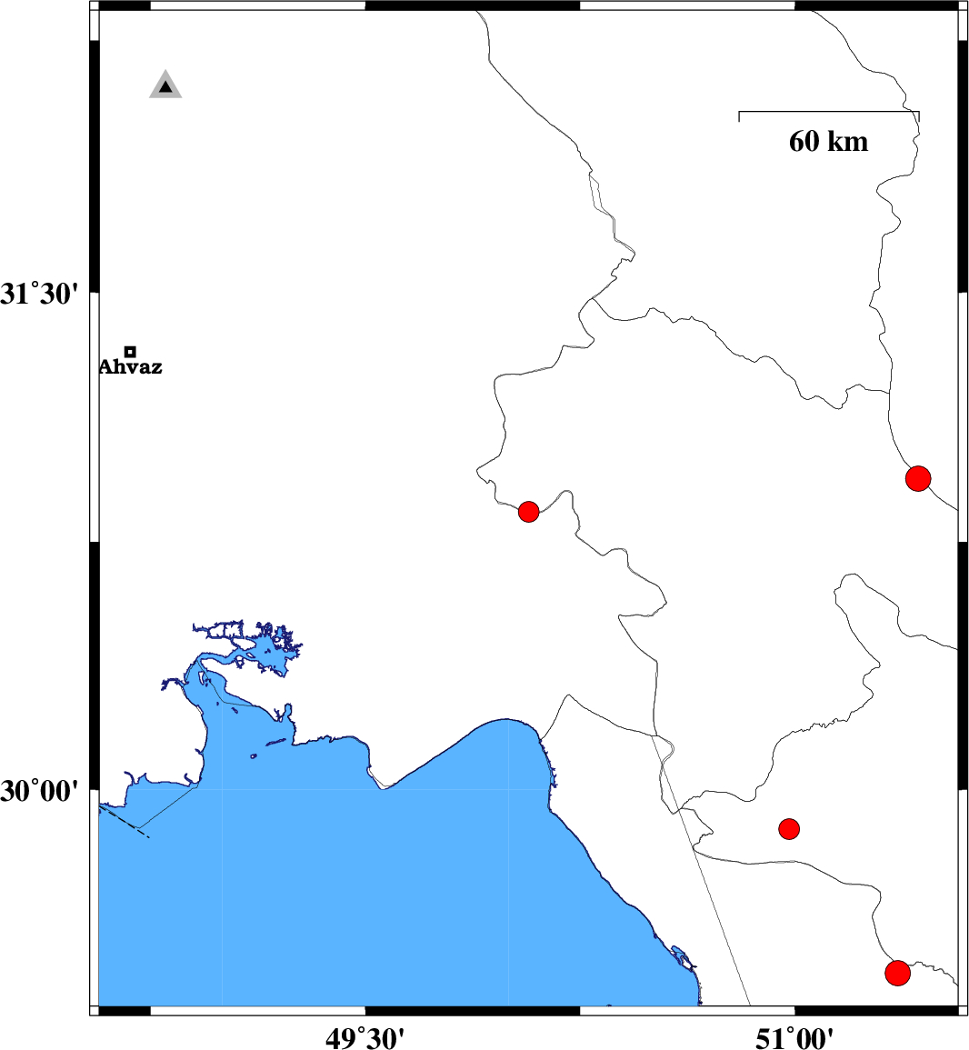Map Region : lat:29.34-32.34  lon:48.57-51.57