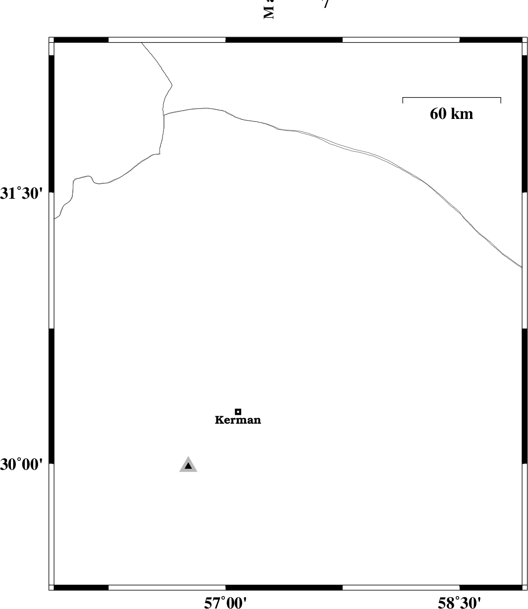 | 2019/04/16 | 22:43:48.4 | 03:13:48.4 | 30.79 | 57.36 | 10 | Mb4.3 | Kerman Province, 62 km North-East of Kerman |