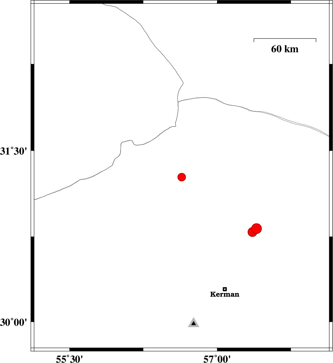| 2019/04/16 | 22:43:48.4 | 03:13:48.4 | 30.79 | 57.36 | 10 | Mb4.3 | Kerman Province, 62 km North-East of Kerman |