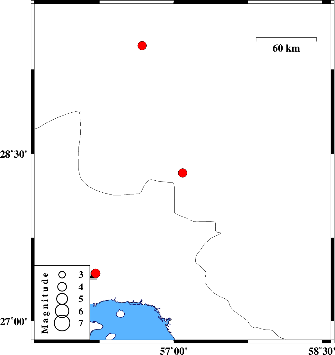 | 2019/05/10 | 02:41:54.7 | 07:11:54.7 | 27.43 | 56.21 | 21 | ML4.1 | Hormozgan Province, 28 km North of Bandar-e abbas | ||