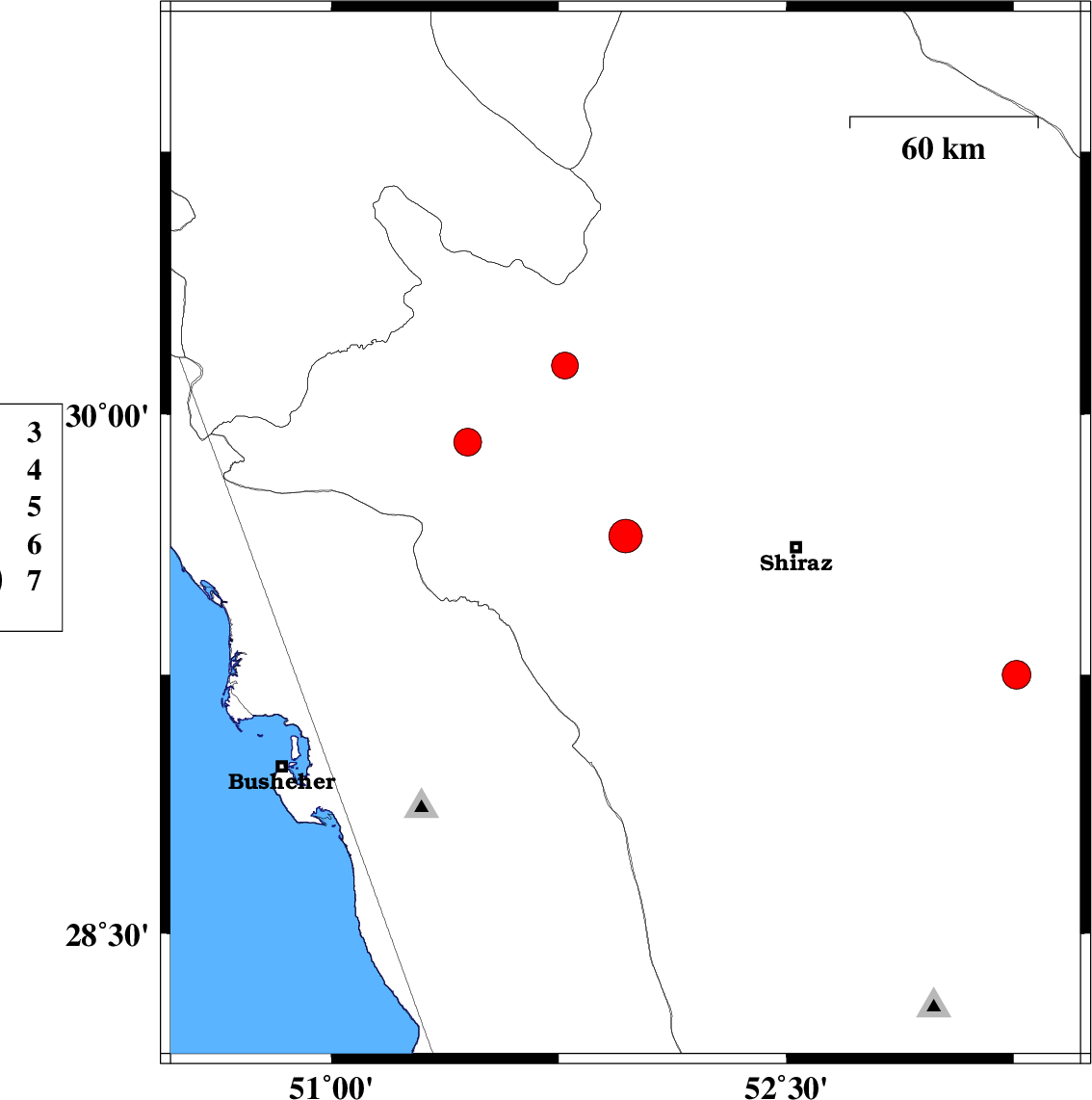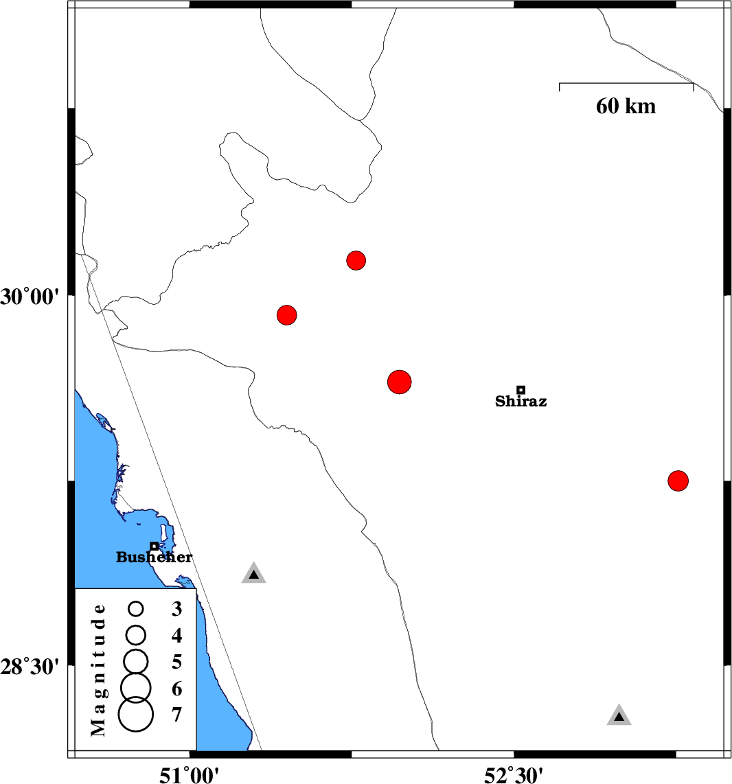 | 2019/05/12 | 09:13:17.2 | 13:43:17.2 | 30.14 | 51.77 | 6 | ML3.9 | Fars Province, 24 km -East of Nurabad |