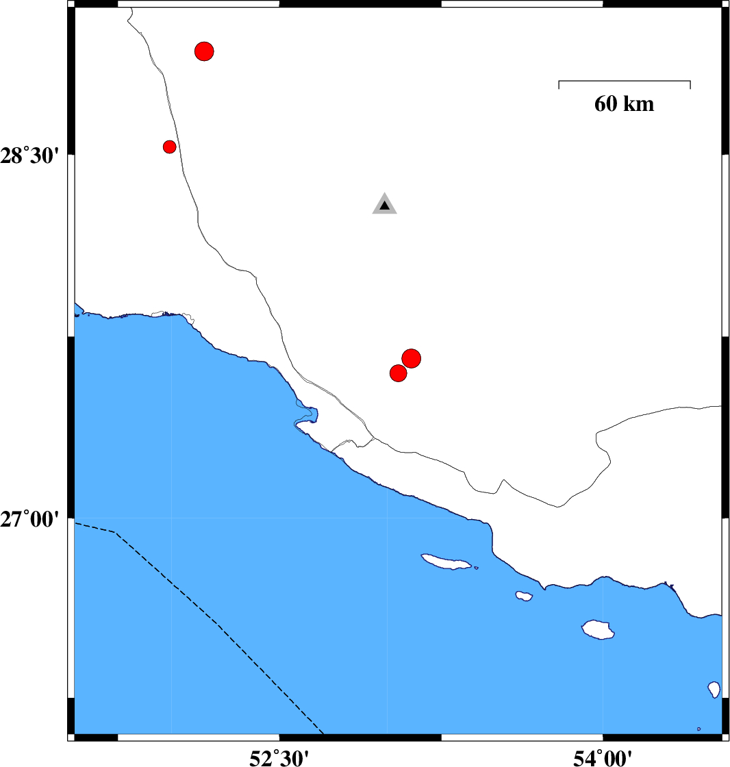 | 2019/05/24 | 09:25:15.9 | 13:55:15.9 | 28.92 | 52.15 | 8 | ML4 | Fars Province, 8 km of Farashband | ||