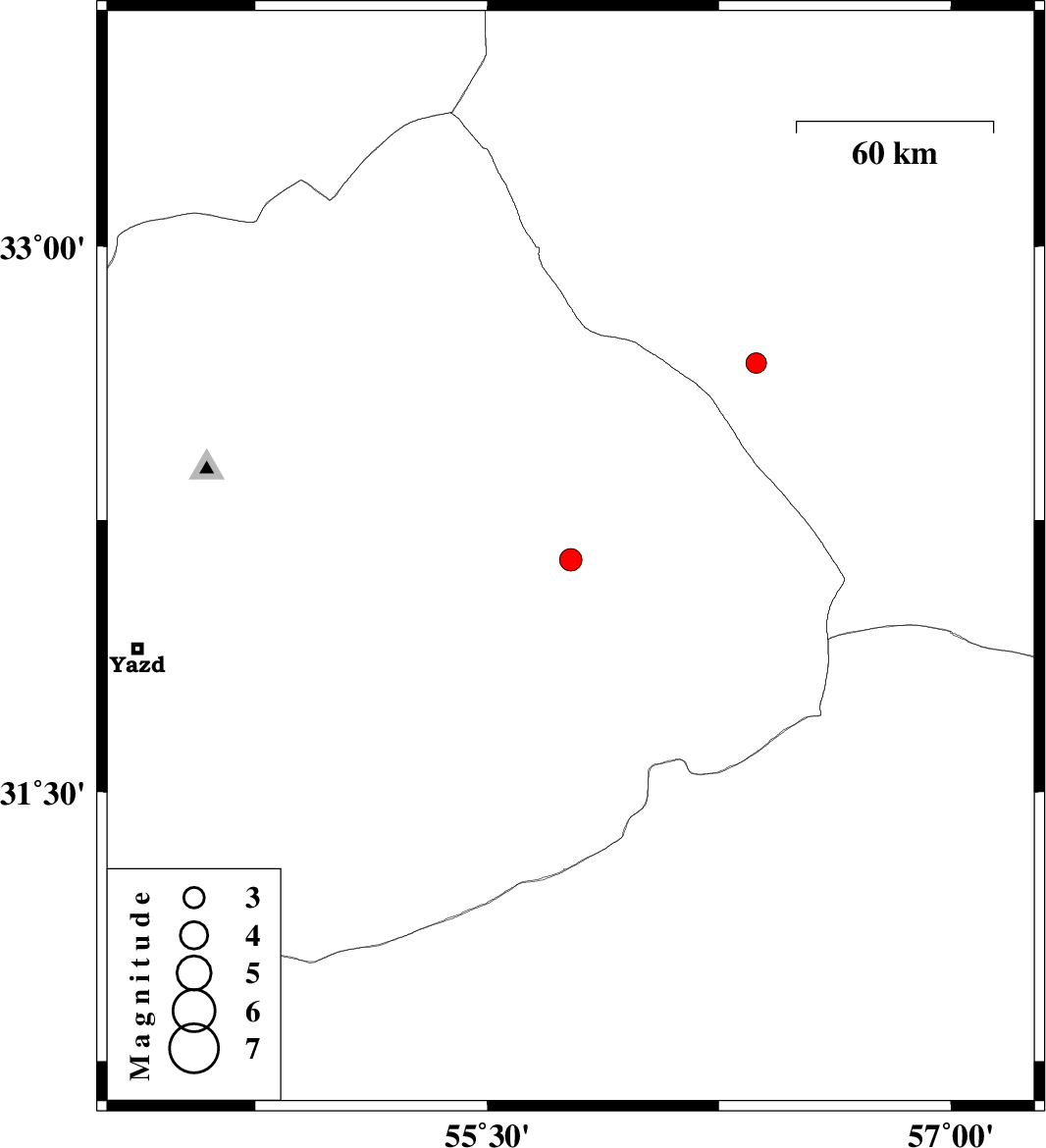 | 2019/05/25 | 22:35:58.8 | 03:05:58.8 | 32.68 | 56.37 | 12 | ML3 | Yazd Province, 115 km South-West of Tabas |