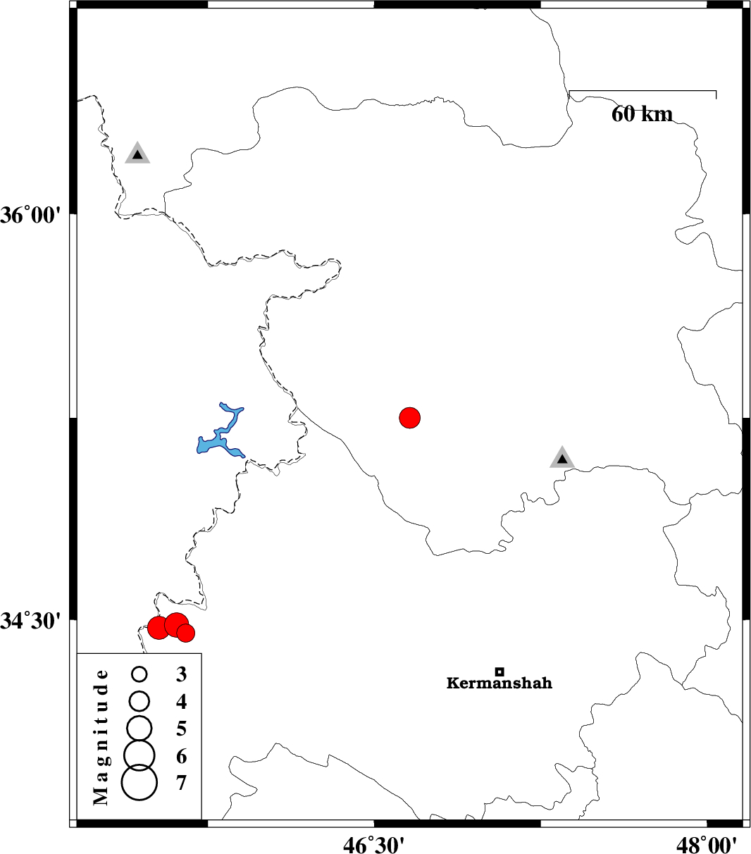 | 2019/06/12 | 18:02:58.5 | 22:32:58.5 | 34.45 | 45.65 | 14 | ML3.7 | Kermanshah Province, 10 km of Qasr-E-Shirin | ||