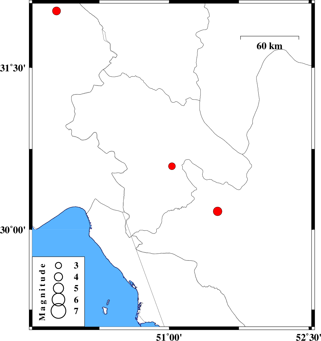 | 2019/06/18 | 20:14:25.7 | 00:44:25.7 | 30.17 | 51.52 | 10 | ML4.2 | Fars Province, 6 km of Nurabad | ||