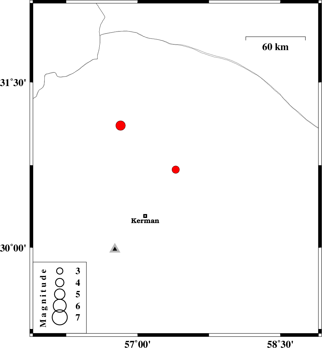 | 2019/06/15 | 07:08:26.7 | 11:38:26.7 | 31.11 | 56.82 | 10 | ML4.5 | Kerman Province, 17 km South of Ravar |