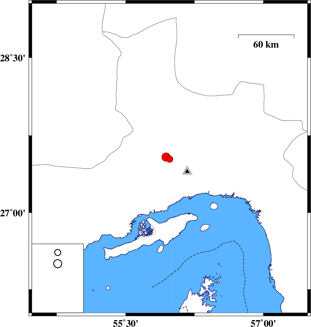 | 2019/06/17 | 13:32:25.8 | 18:02:25.8 | 27.54 | 55.94 | 10 | ML4.3 | Hormozgan Province, 52 km North-West of Bandar-e abbas |