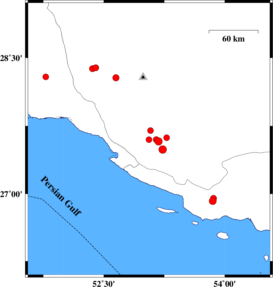 Bushehr Province, 58 km North-West of Bandar-e kangan | |